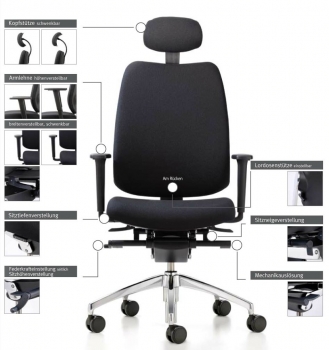 Bürostuhl mit hoher Rückenlehne, Synchronmechanik mit